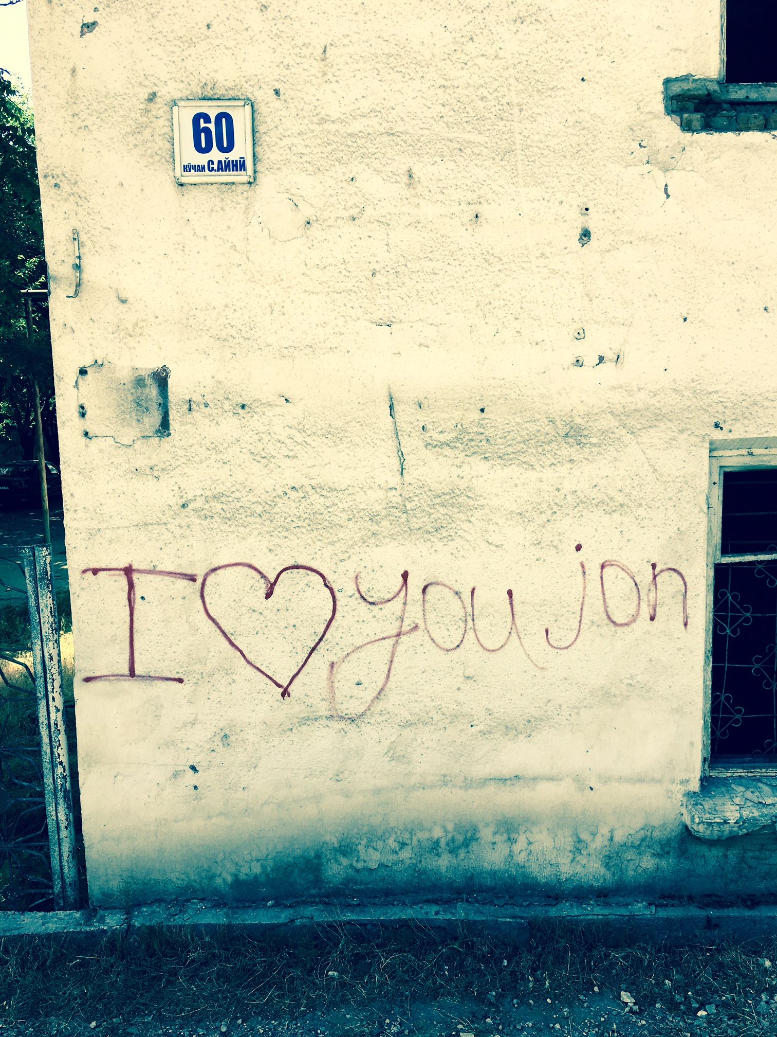 Only 0.06% of Americans are named Jon so there can't be that many in Tajikistan, but a colleague spotted this on a Dushanbe street. I am going to believe that somebody likes the work we're doing.